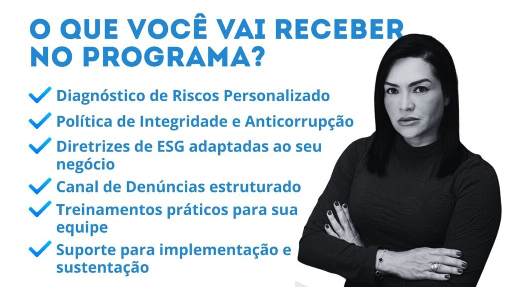 Proteja sua empresa contra riscos legais, multas e prejuízos reputacionais. Implante um Programa de Integridade completo. Que atende à Lei nº 12.846/2013 e às exigências de ESG. Sem burocracia e com suporte especializado.